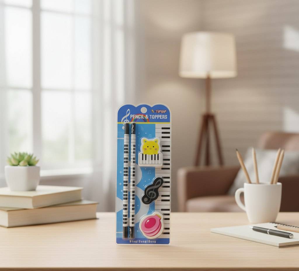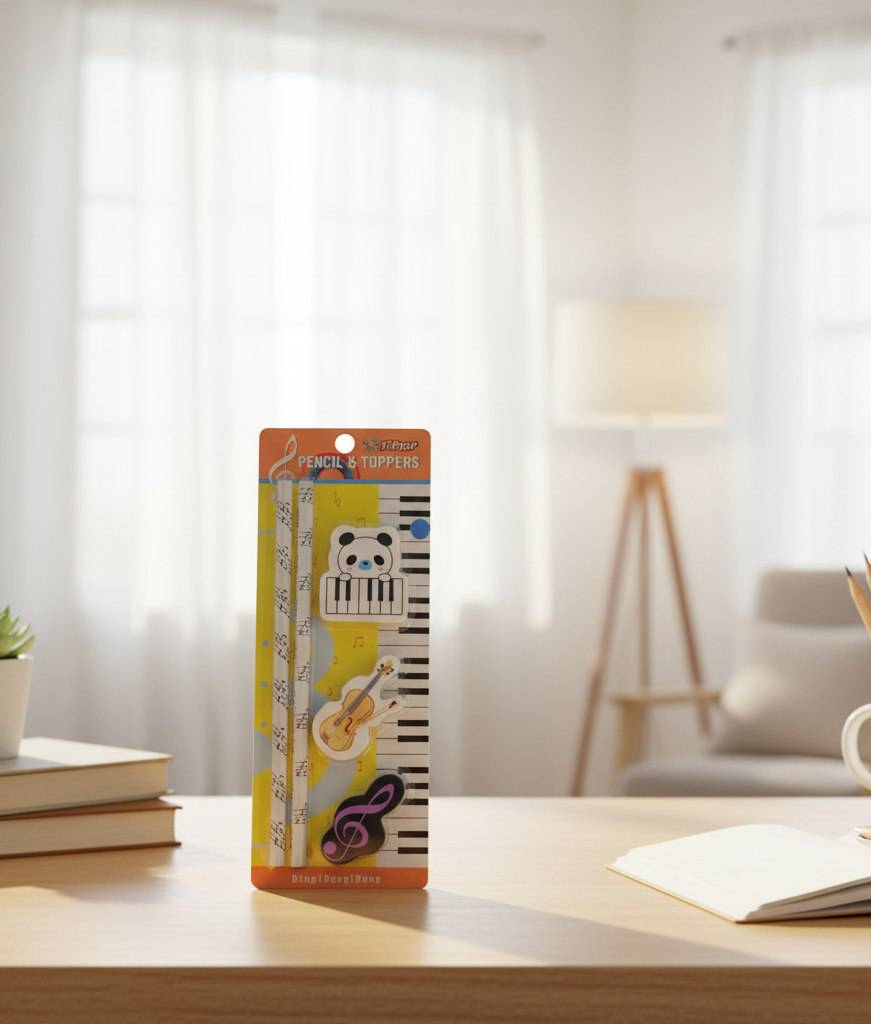بسته لوازم تحریر موسیقی مجموعه 5 عددی شامل مداد و پاک کن