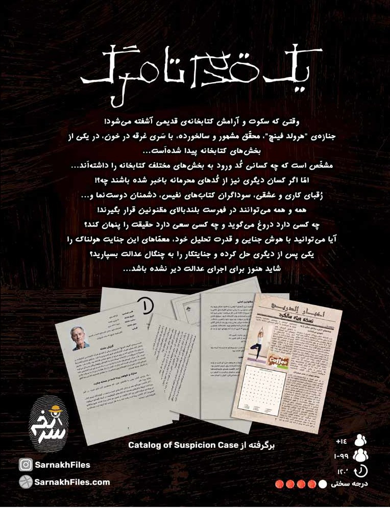 رُقباي کاري و عشقي، سوداگران کتابهاي نفيس، دشمنان دوستنما و... همه و همه ميتوانند در فهرست بلندبالاي مظنونين قرار بگيرند!
