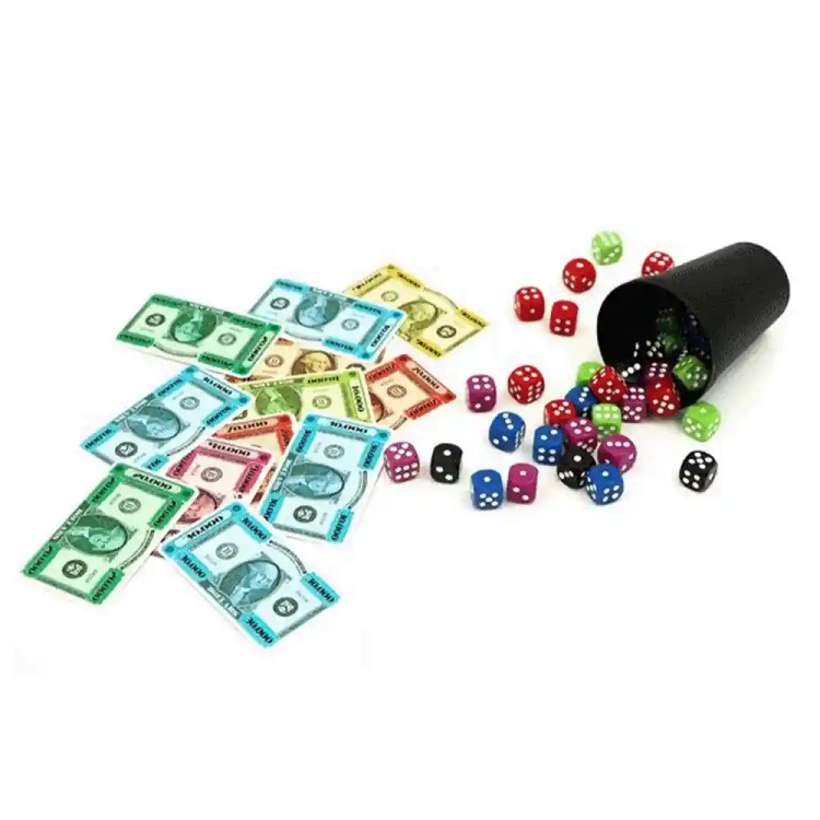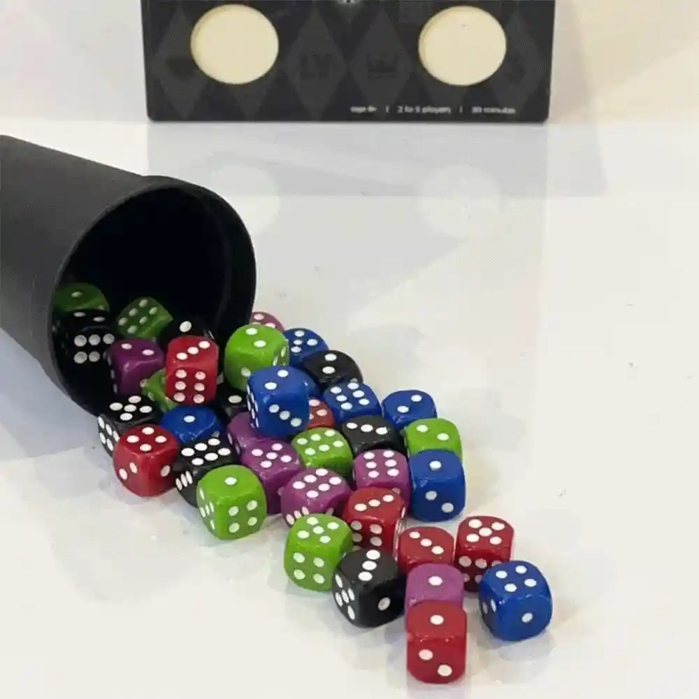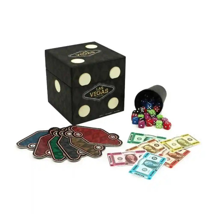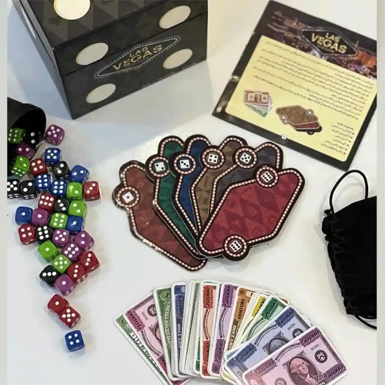 محتویات: 54 کارت اسکناس + 6 تایل میز کازینو + 40 عدد تاس + 1 کیسه تاس + 1 لیوان تاس ریختن + دفترچه قوانین