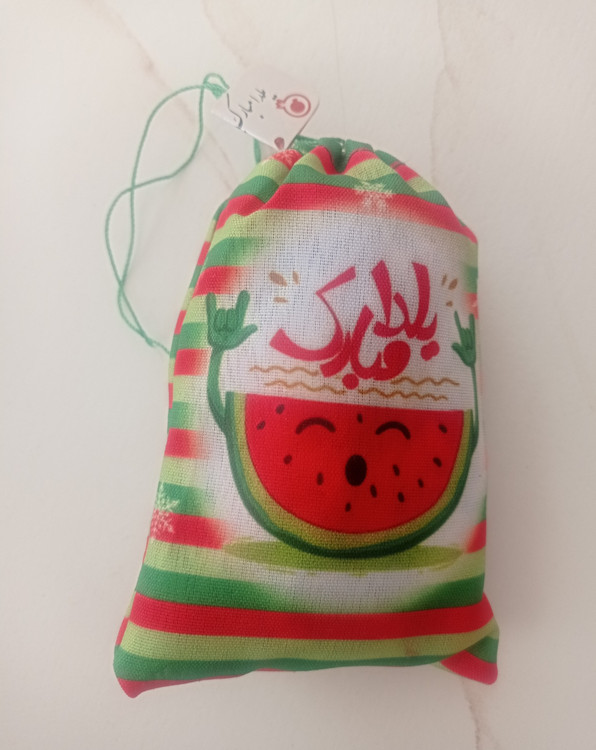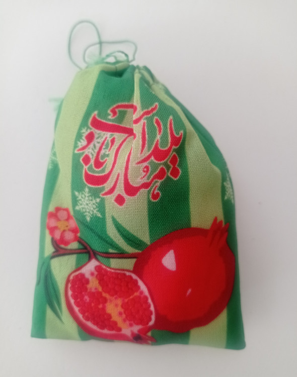گیفت کیسه ای طرح جشن شب یلدا همراه با اسمارتیز بیشتر حالت تزئینی دارد. داخل آن با الیاف پر شده و روی آن تعدادی اسمارتیز قرار دارد. قرار دادن یک یا دو عدد از این گیفت ها در باکس هدیه یا سفره شب یلدا شما جلوه ی بسیار زیادی به هدیه یا سفره تان می دهد.